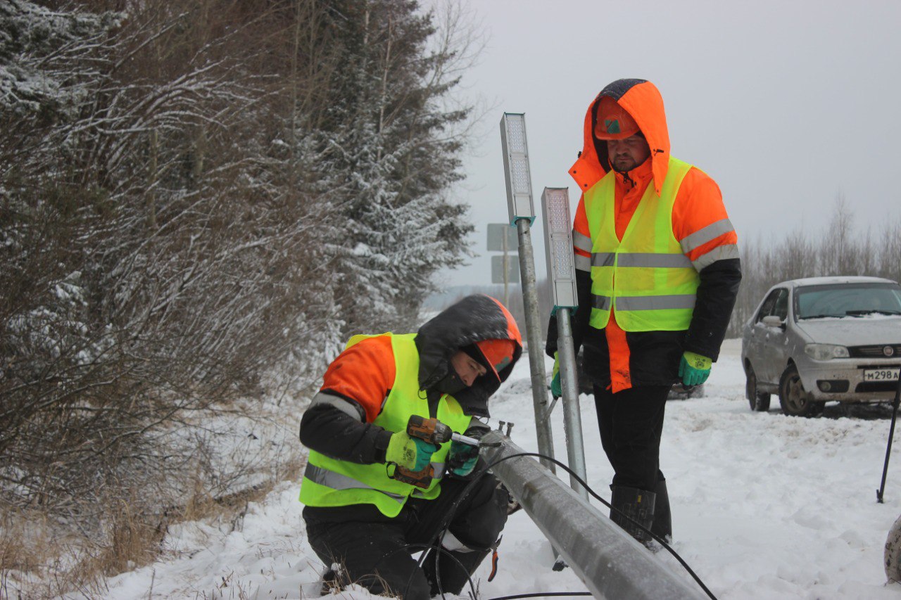 На перекрестке региональных дорог Ижевск-Сарапул и Бураново-Киясово ведется работа по установке линии освещения.